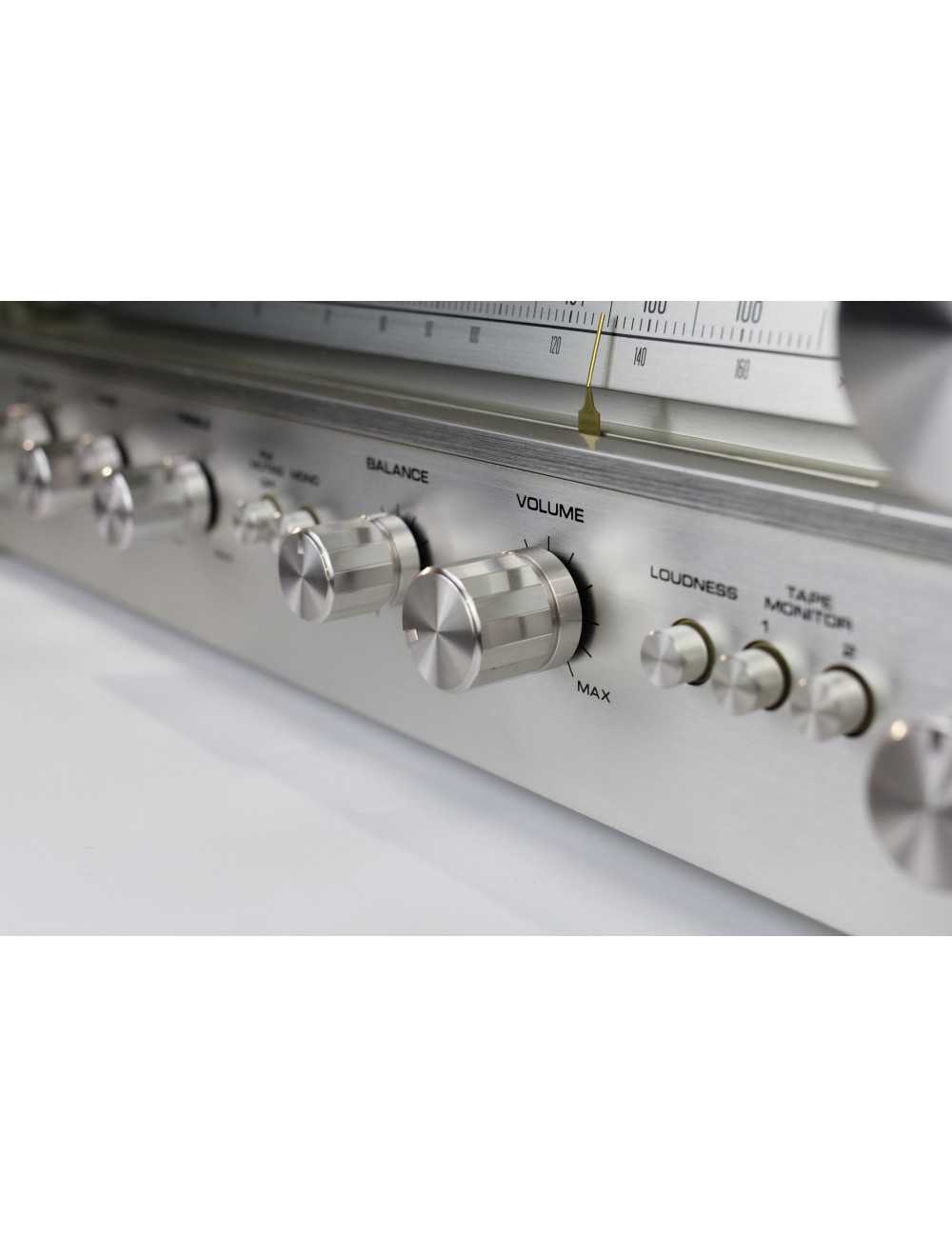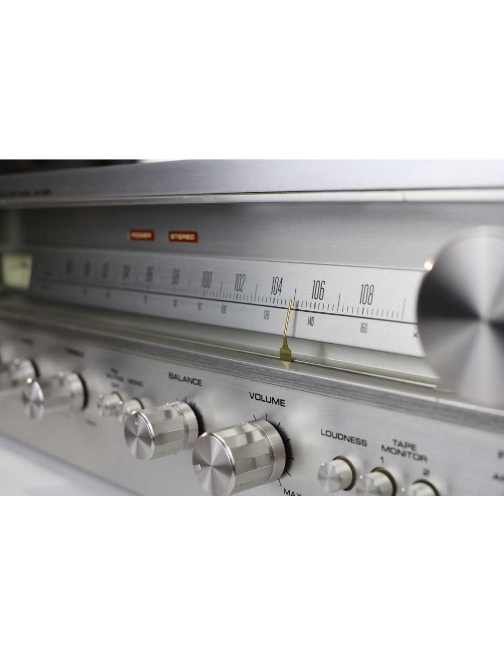 Pioneer SX-550 to ucieleśnienie klasycznego stylu lat 70. Panel przedni wykonany z aluminium, drewniane boczne panele oraz podświetlana skala radiowa nadają mu niepowtarzalnego charakteru. Wyraźnie oznaczone pokrętła i przyciski zapewniają intuicyjną obsługę, a cała konstrukcja sprawia wrażenie solidności i dbałości o detale.