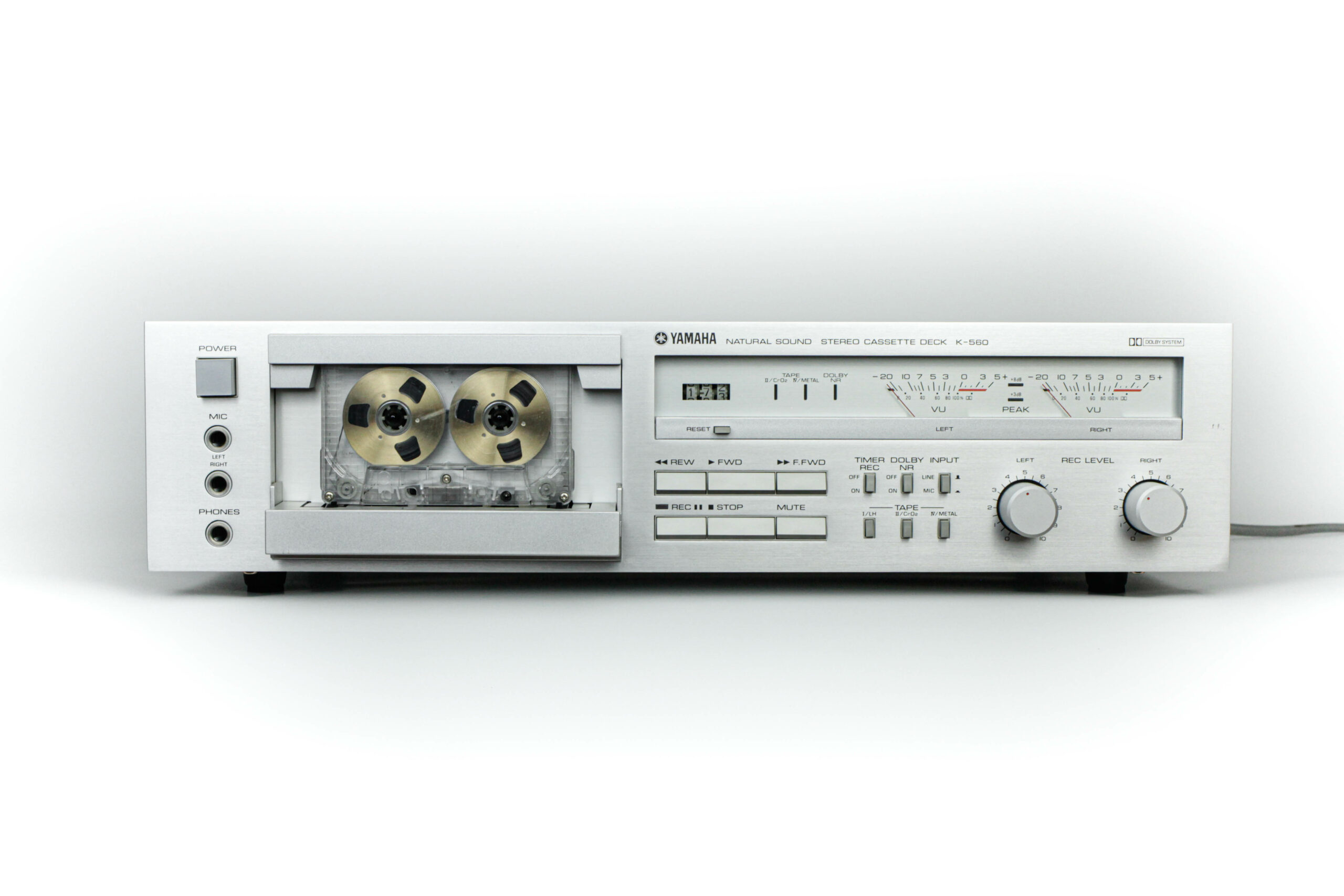 Odtwarzacz kaset Yamaha K-560 wyróżnia się minimalistycznym, ale eleganckim designem, który doskonale wpisuje się w estetykę lat 80. Solidna, metalowa obudowa z aluminiowym panelem przednim podkreśla trwałość i wysoką jakość wykonania. Duże, czytelne wskaźniki VU oraz intuicyjny układ przycisków sprawiają, że obsługa tego modelu jest niezwykle wygodna.