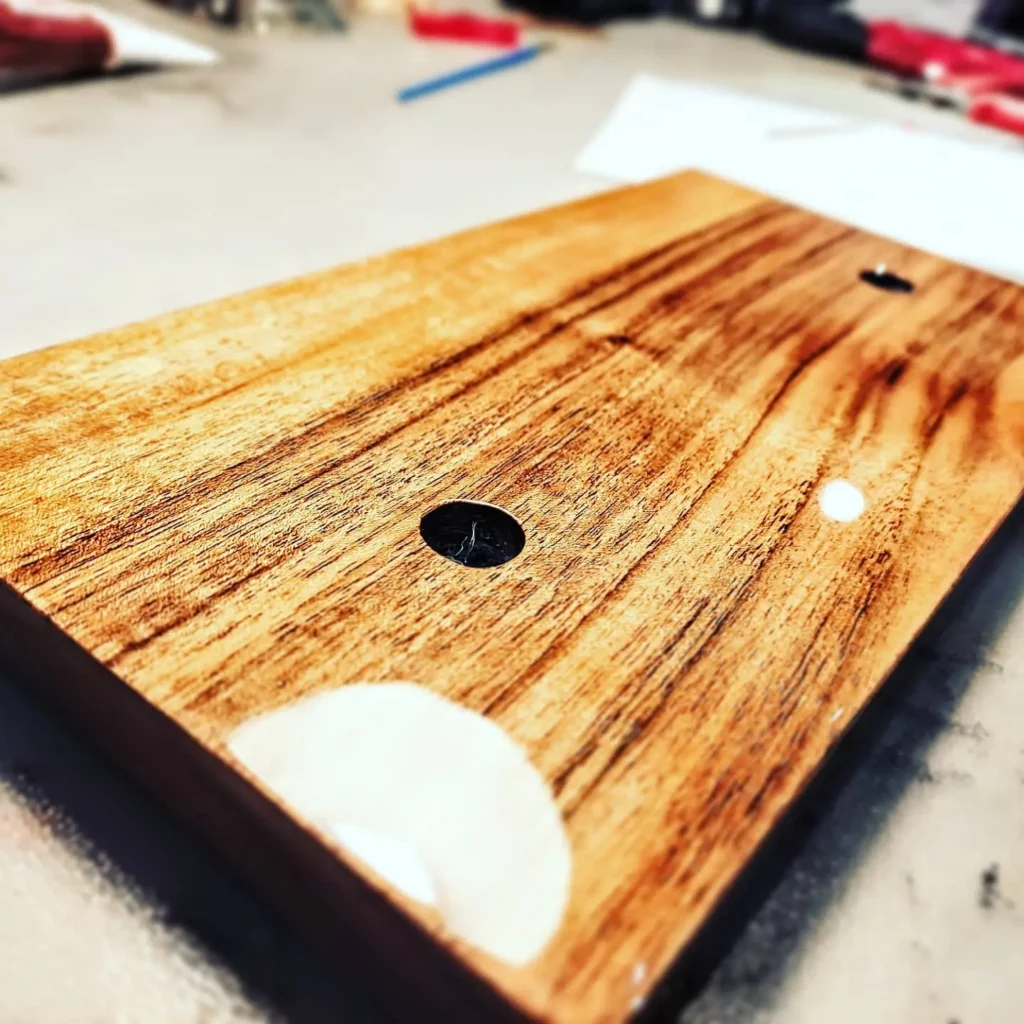 Po wyschnięciu ostatniej warstwy lakieru lub oleju, delikatnie przeszlifuj powierzchnię papierem ściernym o wysokiej gradacji (np. 400–600) i oczyść z pozostałości pyłu. Polerowanie zapewni gładkość i perfekcyjny wygląd obudowy.